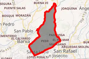 It is located in the Greater Metropolitan Area, in the central valley of the country, its borders are to the north with the Barva and San Pablo districts of the Barva canton, to the east the Ángeles district of San Rafael canton, to the south the San Josecito district of San Rafael canton, and to the west the Mercedes district of the Heredia canton.