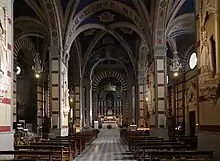 The church underwent major enlargements and reconstructions in 1738 and in 1874-1878; only the choir and two vaults, the second and third of the central nave, remain from the original church. The present Gothic Revival architecture style church is the work of Enrico Presenti and Mariano Falcini. The facade was designed by Domenico Mirri (1856-1939), and completed by Giuseppe Castellucci.