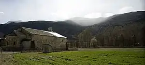 Santa Maria d'Àneu is a Benedictine monastery in La Guingueta d'Àneu, Pallars Sobirà, Catalonia, Spain. It is known for its apse, originally painted at the church and later transferred to the Museu Nacional d'Art de Catalunya.[1] The Romanesque monastery was documented in the year 839 in the records associated with the consecration of the Cathedral of Santa Maria d'Urgell. It is believed that it was originally a Visigoth monastery dedicated to St. Deodata. Until the late 10th century, it was dedicated to St. Peter. In the 11th century, it became a Benedictine monastery but in 1216, it was transferred to the Augustinians. By 1723, after a gradual decline, it had only one prior and a lay brother. Becoming part of the deanery of Anheu, it served as a pilgrimage center for the entire region. During the Spanish Civil War in 1936, it was burned and later replaced by a replica. The sanctuary is dedicated to the Mare d'Àneu.