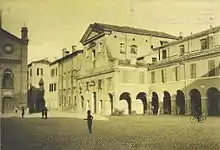 The Sacred Hospice of Santa Maria Bianca was founded in 1432 by the Confraternity of the Misericordia dei Battuti, with the aim of "collecting and maintaining the exposed, housing pilgrims and caring for the poor, sick and insane". After a few years the hospice was enlarged thanks to the considerable inheritance of 550 pounds of bolognini left in 1448 by the nobleman Francesco, son of Antonio Padella of the Manfredi family.[3] The following year, the regents of the Hospitale de Santa Maria Biancha received another inheritance with the will dated 15 March 1449 by Gerardo Padella (the last descendant of this noble and childless family), who donated all his possessions, with the clause that if it was decided to close the hospital all the money from the inheritance should be returned in full to the parish of San Michele arcangelo in Cividale. These bequests made it possible to erect a new building in Borgo Novo, next to the cathedral of Mirandola.[4] In 1473 a fire destroyed the historical archive.