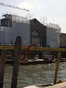 The complex consists of a church, located on the canal, and two lengthy wings housing the women with two interior courtyards. The original design was completed by Giorgio Massari by 1725. The wings were completed in three stories from 1730 to 1738, but the church facade was never completed and superior portions remain in brick.[9] The buildings are presently under restoration, with plans to create a hospice for the elderly.[10]