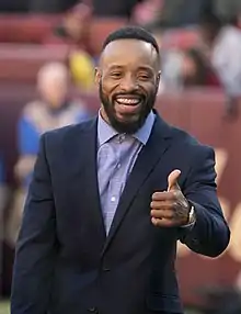 Santana Terrell Moss (born June 1, 1979) is a former American football wide receiver who played in the National Football League (NFL) for fourteen seasons. He played college football for the University of Miami, where he earned All-American honors. Moss was picked by the New York Jets in the first round of the 2001 NFL Draft, where he spent 4 seasons with the team, before playing for the Washington Redskins for 10 seasons. Moss was selected as an All-Pro in 2005.