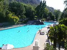 The Tupahue pool was opened in 1966 on Tupahue hill, in what was originally a quarry. Surrounded by vegetation, there is a stone wall by Chilean muralist María Martner and Mexican Juan O’Gorman.[8] The pool is 82 meters long and 25 meters wide.