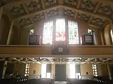 In the giant choir loft is almost a century-old pipe organ made by Fray Gregorio Hontomin, OP made in Rosaryhill in Hong Kong. The Dominicans transferred the pipe organ from Hong Kong to the Sto. Domingo Church in 1954 after the Chapel of St. Albert the Great’s Priory, the center of religious formation and studies of the Dominican Province of the Holy Rosary, closed.[2] The inauguration of the pipe organ was June 9, 1959. It was restored to its grandeur by Diego Cera Organbuilders Inc., custodians of the world-famous Las Piñas bamboo organ.[2][7] The restoration involved repositioning of the pipe organs from the edges to slightly forward, reconstruction and modernization of the organ console from scratch, and most likely a reworked wind pump system.