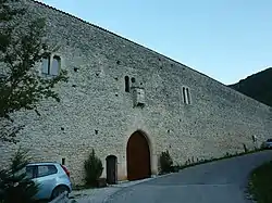 The monastery is a fortified building, with walls all around the abbey and a very small number of windows and doors.