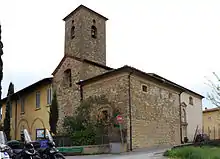 Santo Stefano a Pozzolatico is a Roman Catholic church on Via di Riboia #3 in the neighborhood of Pozzolatico within the town limits of Impruneta, but just north of the Autostrade del Sole circumvaling Florence, and in the province encompassed by the metropolitan city of Florence, region of Tuscany, Italy.