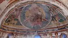 The actual building has a single nave three bays and an end apse. The sacristy was added to the apse during the Baroque period. The outside the apse is decorated with four lesene and twelve niches. Inside it preserves precious frescoes from the 11th century, featuring Christ and the four Evangelists, with 14 figures below representing the Apostles and saints.