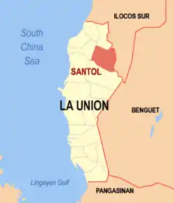 Santol, officially the Municipality of Santol (Ilocano: Ili ti Santol; Filipino: Bayan ng Santol), is a 4th class municipality in the province of La Union, Philippines. According to the 2020 census, it has a population of 14,166 people. [3]