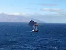 92.6% of the island population lives in the urban area of Mindelo,[1] on the Porto Grande Bay, a caldera that is breached by the ocean.[3] A small islet, Ilhéu dos Pássaros, is less than one nautical mile off the coast of Porto Grande Bay. There are a few intermittent streams, including Ribeira do Calhau and Ribeira de Julião.