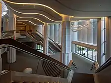 The shoebox style small chamber music hall has seating capacity of 453.[7] The restaurant with terrace is located on the ground floor, and a bar, cafe, are open during the concert. The main concert hall and the small chamber music hall also have seats designed for handicapped audiences.