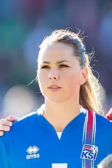Sara Björk Gunnarsdóttir (born 29 September 1990) is an Icelandic footballer who plays for Olympique Lyonnais of the French Division 1 Féminine. She previously played for Swedish Damallsvenskan club FC Rosengård and VfL Wolfsburg. Sara Björk has been part of Iceland's national team since 2007 and represented her country at the 2009, 2013 and 2017 editions of the UEFA Women's Championship. She is the only woman to have been named the Icelandic Sportsperson of the Year twice, in 2018[1] and 2020.[2] In August 2020, she became the first Icelander to win the UEFA Women's Champions League.[3]