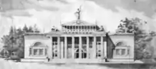 Ward painted society portraits in Nashville.[4] She also taught art[5] as director of Ward-Conley Studios.[6] In 1896 she designed the large two-story Woman's Building at the Tennessee Centennial and International Exposition,[7][8] modeled on Andrew Jackson's Nashville home, the Hermitage. She also chaired the Fine Arts Committee[9] that chose art for display at the exposition.[1] "Her plans for the Woman's Building were selected by the judges without a dissenting voice," according to a report at the time.[10]