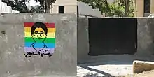 Street murals and graffiti art commemorating Hegazi in the Jordanian capital Amman were speedily painted over after a social media uproar.[64] A journalist decried the act in a tweet saying: "...the Amman Municipality worked until the late night hours on obliterating drawings by some aberrants (شواذ, an Arabic pejorative for homosexuals) in some areas of Amman. I am surprised that this category (homosexuals) exists even though it is foreign to our customs and traditions..."[65] A spokesperson for the Greater Amman Municipality said: "Amman Mayor Yusef Al-Shawarbeh issued an order to all district managers to remove the murals."[65]