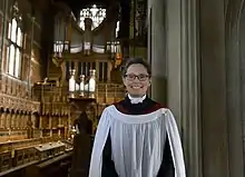 Sarah MacDonald FRCO (born November 22, 1968) is a Canadian-born organist, conductor, and composer, living in the UK, and currently holds the positions of Fellow and Director of Music at Selwyn College, Cambridge,[1] and Director of the girl choristers at Ely Cathedral.[2] She has been at Selwyn since 1999, and is the first woman to hold such a post in an Oxbridge Chapel. In 2018 MacDonald was given the honorary award of Associate of the Royal School of Church Music (ARSCM).