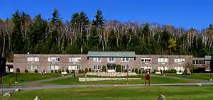 Saranac Lake High School is located in the village of Saranac Lake, New York, USA. There are currently about 350 students in grades 9 through 12.[3] It is under the jurisdiction of the Saranac Lake Central School District, whose offices are housed on the ground floor of the auditorium building. The school is housed in a 98,000-square-foot (9,100 m2) building, completed in 1969. It is designed in the typical unsightly style of the mid-century period and is colloquially referred to as "prison-like" in image and nature among staff and students.[4]