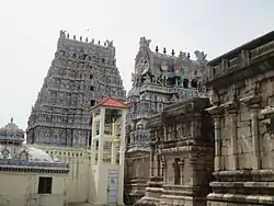 The Saranathan Temple in Thirucherai, a village in the outskirts of Kumbakonam in the South Indian state of Tamil Nadu, is dedicated to the Hindu god Vishnu. The temple is glorified in the Divya Prabandha, the early medieval Tamil canon of the Azhwar saints from the 6th–9th centuries AD. It is one of the 108 Divyadesam dedicated to Vishnu, who is worshipped as Saranathan and his consort Lakshmi as Saranayaki. It is believed that Saranathan appeared for Cauvery, the river goddess, who performed penance at this place.
