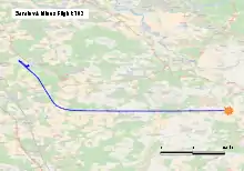 The aircraft crashed near the villages of Argunovo and Stepanovskoye in Ramensky District of Moscow Oblast.[5] The accident occurred at 14:27 local time (11:27 UTC), six minutes after take-off from Moscow's Domodedovo Airport.[2][6] According to a source inside the investigation, a few minutes before the crash the pilot of the aircraft told air traffic controllers about a malfunction, and that he planned to make an emergency landing at Zhukovsky. This report was later dismissed by the investigation committee.[7] Eyewitnesses reported that the aircraft was in flames during its descent to ground.[8] The crash was caught by a surveillance camera in a nearby house. The footage showed that the aircraft slammed into the ground, and immediately burst into flames.[9]