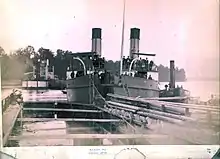Saratovskiy Ledokol (Russian: Саратовский ледокол; literally: Saratov icebreaker) was a Russian steam-powered twin-screw icebreaker built for the Ryazan-Ural Railway Company at Sir WG Armstrong Mitchell & Company in Newcastle upon Tyne, United Kingdom, in 1896.[1] She was primarily used to escort a railway ferry across Volga during the winter months, but could also carry cargo and passengers on her own. In order to be able to pass the Mariinsk Canal System with 28-foot (9 m) wide locks, Saratovskiy Ledokol could be split into two halves along the centerline, each with its own oil-fired boilers, compound steam engine, and smoke stack.[2]