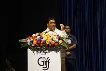 Sarbananda Sonowal (Assamese: সৰ্বানন্দ সোণোৱাল / IPA: xɔɹbanɔndɔ xʊnʊwal, Born: 31 October 1962)[3] is an Indian politician from Assam[4] who is the current Cabinet Minister of Ports, Shipping and Waterways and Cabinet Minister of AYUSH in the Government of India.[5] He is a Member of Parliament in the Rajya Sabha (Upper House of India's Parliament) from Assam[6] and also a member of the Cabinet Committee on Political Affairs.[7] He is a former Chief Minister of Assam and a former Member of the Legislative Assembly (India) in Assam Legislative Assembly. Sonowal earlier served as the Assam state President of Bharatiya Janata Party (BJP) from 2012 to 2014 and again in 2015 to 2016.[8] He has also served as the Minister for Sports and Youth Affairs, Government of India, from 2014 to 2016. He was chosen to be the Chief Minister of Assam after the 2016 Assam Legislative Assembly election and he became the first Chief Minister of Assam from Bharatiya Janata Party.[9][10] During the cabinet reshuffle on 7 July 2021, he was inducted Cabinet minister in the 2nd Modi Cabinet.[11]