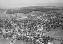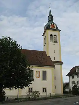 Sarmenstorf is first mentioned in 1173 as Sarmarsdorf.[3] During the Middle Ages, Einsiedeln Abbey, St. Blaisen Abbey, Säckingen Abbey, Wettingen Abbey, Frauenthal Abbey, Gnadental Abbey and Königsfelden Abbey all owned property in Sarmenstorf. The rights to high justice were held by the House of Habsburg after 1306. Those rights went to Lucerne in 1415 and in 1425 to the Confederation. The bailiwick in der Gassen (which included Sarmenstorf) was held by the Freiherren of Küssnacht, Eschenz and Hermetschwil Abbey until 1514, when it transferred to Melchior zur Gilgen.