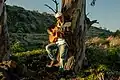 Saro Tribastone playing the Tzouras on the Mediterranean shore