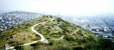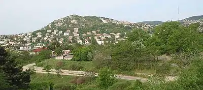 In the beginning of the 20th century a military complex was built at the foot of the hill (now Petőfi Barracks). The first great building on the hill itself was the college of the Congregation of Notre Dame de Sion, established in 1930. Suburbanization only began in the 1940s and 1950s when family homes were built in place of the old orchards. In 1944 concrete bunkers were built on the top of the hill, and many new villas were destroyed during the siege of Budapest in 1944-45.[5] The present stock of houses mainly comes from the last decades of the 20th century. The natural upper areas were preserved with the establishment of the nature reserve in 1958. According to the 1990 census Sashegy had 9030 inhabitants (7969 in the 11th and 1061 in the 12th district part).