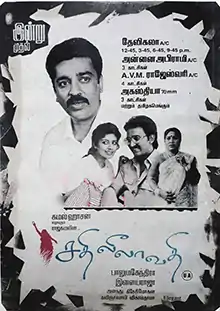 Jayaram was initially offered the lead role but his unavailability meant that the team finalised Ramesh Aravind.[3] Kovai Sarala was signed to portray the role of Palani after great debate. While Kamal Haasan wanted her in the film, Balu Mahendra was hesitant. Kamal Haasan waited for Sarala for six months and brought her on board the film. Sarala later said that Mahendra was delighted that she was part of the film and that he felt bad for initially having doubts in her ability.[4] Kamal Haasan speaks Kongu Tamil (Coimbatore Tamil) in the film, which he was said to have learned from Kovai Sarala.[5] Kovai Sarala won Tamil Nadu State Film Award for Best Comedian award.