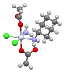 Satraplatin (INN, codenamed JM216) is a platinum-based antineoplastic agent that was under investigation as a treatment of patients with advanced prostate cancer who have failed previous chemotherapy. It has not yet received approval from the U.S. Food and Drug Administration.[1] First mentioned in the medical literature in 1993,[2] satraplatin is the first orally active platinum-based chemotherapeutic drug;[3] other available platinum analogues—cisplatin, carboplatin, and oxaliplatin—must be given intravenously.