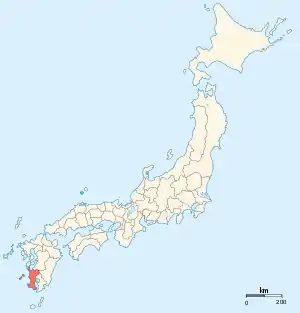 Satsuma Province (薩摩国, Satsuma-no Kuni) was an old province of Japan that is now the western half of Kagoshima Prefecture on the island of Kyūshū.[1] Its abbreviation is Sasshū (薩州).