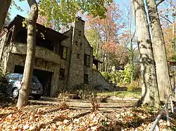 After many years of designing buildings to suit the wants and needs of his public, Sauer constructed a group of buildings for his own amusement on his plot of land in Aspinwall.[2] He began to construct rental properties, acting as his own designer, mason, bricklayer, and carpenter.[4] From 1928 through 1930, he converted his former chicken coop into a three-story apartment house called "Heidelberg".[2][6] After this eccentric building, he gradually transformed his wooded hillside into an architectural fantasy, and a complex of castlesque buildings and landscape features in Fantastic architectural style took shape and was progressively added to by Sauer until his death in 1942.[3][5][7]