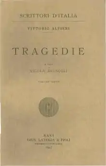 Saul is a theatrical tragedy in five acts, written by Vittorio Alfieri in 1782,[1] in which the eponymous protagonist simultaneously embodies the tragic heroism of both tyrant and victim. This play marks the high point of Italian tragedy and pre-romantic poetry.
