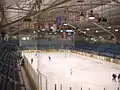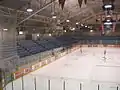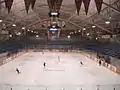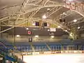 The seating area had main concourse around the top of arena, and an aisle around the boards at ice level for movement of spectators. The benches for hockey teams, and penalty boxes were located in these aisles. The seats were all wooden benches, painted light blue.