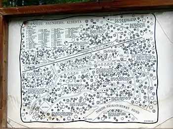 Saunders Creek is a ghost town in west-central Alberta, Canada. Built as a coal mining community, the town existed from 1913 to 1954. It is located in the foothills of the Canadian Rockies near the David Thompson Highway, about 55 km west of the town of Rocky Mountain House. It was named for Saunders Creek, a small stream that runs immediately west of the townsite. The North Saskatchewan River flows nearby to the south.
