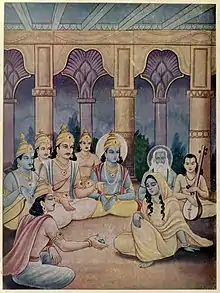 This Parva (book) has 2 sub-parvas (parts or little books) and 18 adhyayas (sections, chapters).[1][5] The following are the sub-parvas:[6][7]