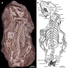 Sauropareion (meaning "lizard cheek") is an extinct genus of basal procolophonid[1] parareptile from earliest Triassic (early Induan stage) deposits of Eastern Cape Province, South Africa. It is known from the holotype SAM PK-11192, skull and partial postcranium. It was collected by the late L. D. Boonstra in 1935 from Barendskraal in the Middelburg District and referred to the Lystrosaurus Assemblage Zone of the Beaufort Group (Karoo Basin). It was first named by Sean P. Modesto, Hans-Dieter Sues and Ross J. Damiani in 2001 and the type species is Sauropareion anoplus. The generic name means "lizard", sauros, and "cheek", pareion from Greek in reference to the lizard-like appearance of the temporal region. The specific name comes from the Greek word anoplos, meaning "without arms or armour".[2]