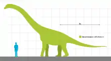 Savannasaurus was a medium-sized titanosaur that measured about 15 metres (49 ft) in length, with a weight of around 20 tonnes (22 short tons) and a shoulder height of around 3 metres (9.8 ft).[4]