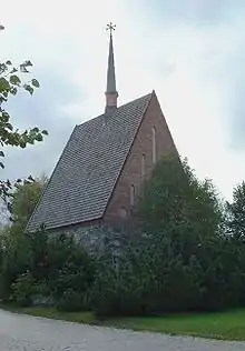 The Stone Sacristy is located in Savilahti, Mikkeli, Finland and is the sacristy of the old church. It is considered to be one of Savonia's oldest buildings and one of the most famous symbols of Mikkeli. No one is sure of the date it was built. The sacristy's current façade is the result of renovations in the 1930s.