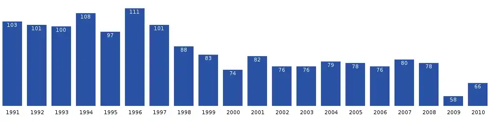 The population of Savissivik decreased by over 40 percent relative to the 1990 levels, and by 10 percent relative to 2000 levels.[6]