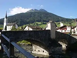 Savognin (in local Romansh dialect Suagnign;[1] Italian: Savognino; German: Schweiningen, official name until 1890) is a village and former municipality in the Sursés in the district of Albula in the canton of Grisons in Switzerland. On 1 January 2016 the former municipalities of Bivio, Cunter, Marmorera, Mulegns, Riom-Parsonz, Salouf, Savognin, Sur and Tinizong-Rona merged to form the new municipality of Surses.[2]