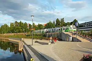 Savonlinna is one of the termini of the Savonlinna–Parikkala regional train route;[7] the default type of rolling stock for this route is the Dm12 railbus.[8] The station has a VR ticket machine, as well as an accessible 55 centimetres (22 in) high platform.[9]