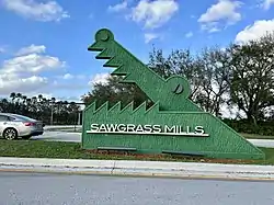 ![]() A welcome sign at the Green Toad Road entrance to Sawgrass Mills in February 2022. | |