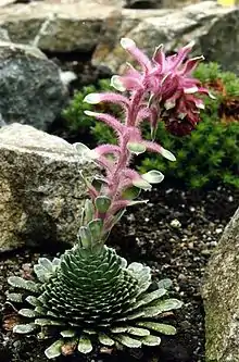 Saxifraga federici-augusti (syn. Saxifraga grisebachii), common name Engleria saxifrage, is a herbaceous perennial plant belonging to the Saxifragaceae family.[1] Its subspecies Saxifraga federici‑augusti subsp. grisebachii and the 'Wisley' cultivar of that subspecies have both gained the Royal Horticultural Society's Award of Garden Merit.[2][3]