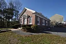 The Saylesville Historic District encompasses significant residential elements of the central mill village, primarily along Chapel and Walker Streets along Saylesville Pond, and extending west on Smithfield Avenue and northwest on Woodland Court. The public buildings of the village are located primarily on Walker Street, which runs east-west south of the pond. The mill worker housing on Chapel and Smithfield are about 1/2 single-family structures and 1/2 multi-unit buildings, either 1-1/2 or 2-1/2 stories in height, built out of either wood or brick. The company made an effort to relieve the uniformity of other mill villages, where identical buildings are in rows, by varying the locations of similar buildings so they were not adjacent.[4] The Saylesville Meetinghouse, an active Friends worship group built in 1703, is on Great Road beyond the end of Chapel Street, and is not part of the historic district. The district was listed on the National Register of Historic Places in 1984.[1]