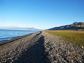 Sayram Lake (Chinese: 赛里木湖; pinyin: Sàilǐmù hú) is located in the Bortala Prefecture near the Tian Shan Mountains, Xinjiang, China.