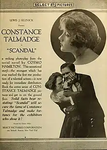 Scandal is a 1917 comedy drama silent black and white film directed by Charles Giblyn and based on a novel by Cosmo Hamilton.[1] It is written by Bess Meredyth.[2] It is one of the first films starring Constance Talmadge.[3][4]