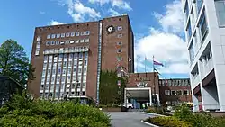 Scandic Park Hotel (formerly Rica Park Hotel) is a large hotel in Sandefjord, Norway. The Park Hotel was completed in 1960 and was the largest and most luxurious hotel in Vestfold County when established.[2] Park Hotel was built on a site that previously belonged to Sandefjord Spa.[3][4] It is located next to the harbor and near the city center. It caters for conferences, business functions, and courses. Most rooms overlook the Sandefjordsfjord. The hotel houses three restaurants: Parkstuen, Kosmos, and Vinstuen.[5] It has spa facilities, gyms, solariums, saltwater swimming pools, saunas, conference halls, and a banquet hall.[6]