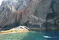 The reserve has two sectors, the Elpa Nera inlet and the peninsula of Scandola. The jagged and sheer cliffs contain many grottos and are flanked by numerous stacks and almost inaccessible islets and coves, such as Tuara.[2] The coastline is also noted for its red cliffs, sand beaches, and headlands.[2]