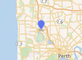 Scarborough Beach Road begins at Charles Street, in North Perth, as the continuation of Angove Street. The road travels north-west through Mount Hawthorn, which has been a shopping destination since the beginning of the 20th century.[3] Axford Park, at the intersection of Oxford Street in Mount Hawthorn, is named in honour of World War I Victoria Cross recipient Thomas Axford. At Main Street, the road turns west and continues in this direction until Frobisher Street, along what was originally part of Green Street. The Glendalough railway station, built in 1992, picks up passengers on the road underneath the Mitchell Freeway bridge, in between Main Street and Frobisher Street. Scarborough Beach Road is one of only two arterial roads between Perth and Joondalup (along with Beach Road) that doesn't have an interchange with the Mitchell Freeway, although there is a "bus and taxi only" service road that is a southbound entrance ramp. Past here, the road continues north-west around Herdsman Lake, through the Osborne Park commercial centre to Innaloo. The Westfield Innaloo shopping centre, a large cinema and a tavern are located around the Odin Road/Liege Street/Ellen Stirling Boulevard intersections, which also carry traffic to the Mitchell Freeway, via Cedric Street. The Stirling railway station is located at that interchange. The road continues to travel north-west until Hancock Street, Doubleview, after which it heads west to Scarborough Beach. The last major intersection is with West Coast Highway, 100 metres (330 ft) east of its terminus.[1]