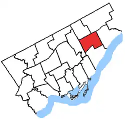 ![]() Scarborough Centre in relation to the other Toronto ridings (2013 boundaries) | |||
