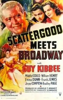 Scattergood Meets Broadway is a 1941 American comedy film directed by Christy Cabanne and written by Michael L. Simmons and Ethel B. Stone. It is the sequel to the 1941 film Scattergood Pulls the Strings. The film stars Guy Kibbee, Mildred Coles, William "Bill" Henry, Emma Dunn, Frank Jenks, Joyce Compton and Bradley Page. The film was released on August 22, 1941, by RKO Pictures.[1][2][3]
